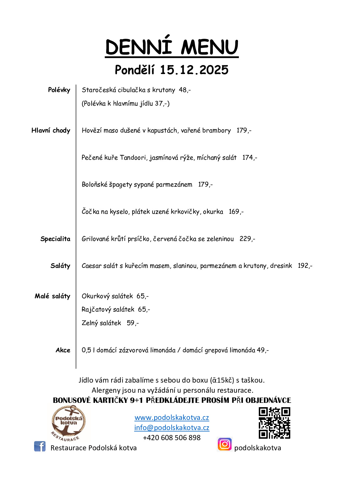 Pro rezervaci na aktuální den volejte přímo 608 506 898.