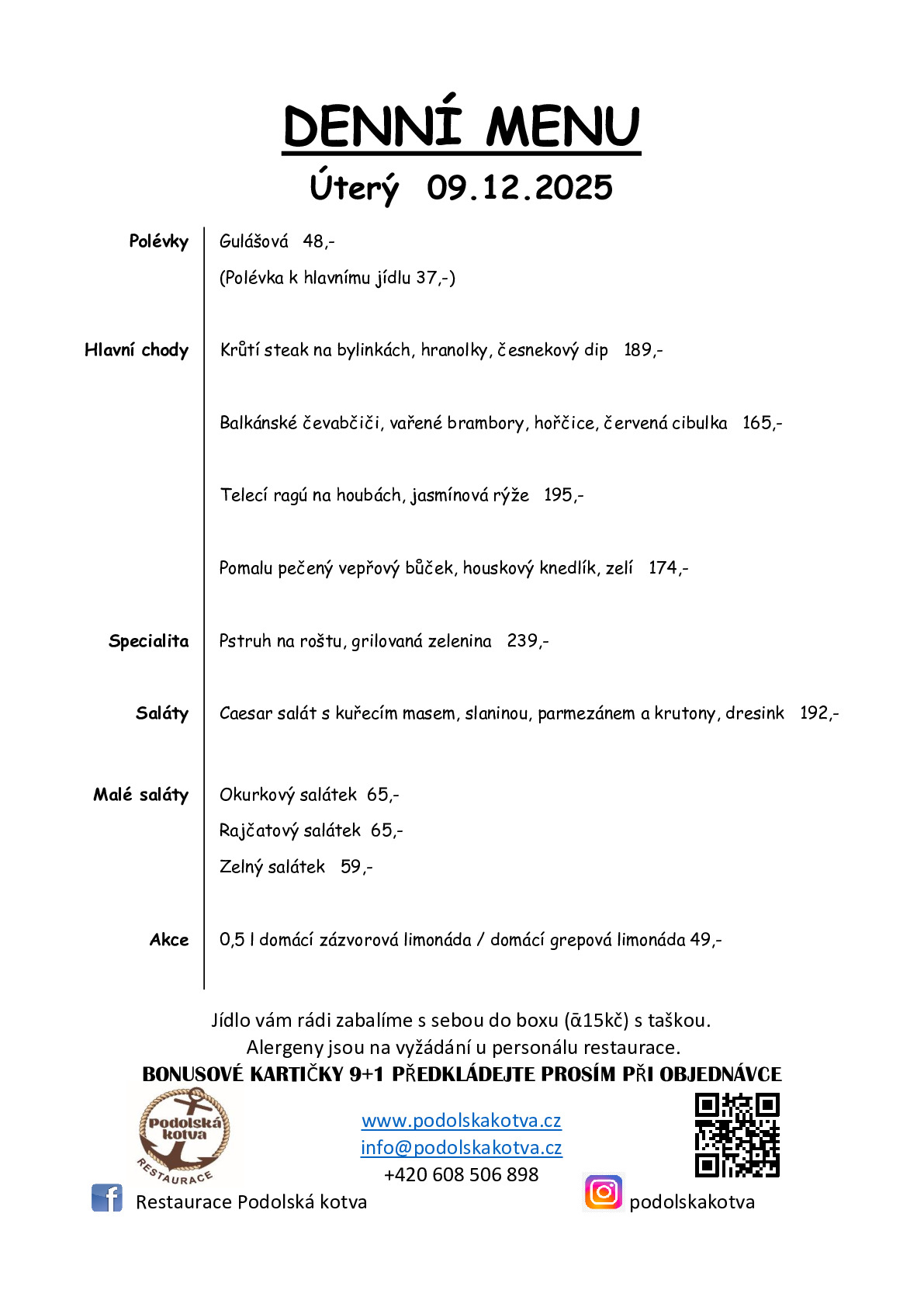 Pro rezervaci na aktuální den volejte přímo 608 506 898.